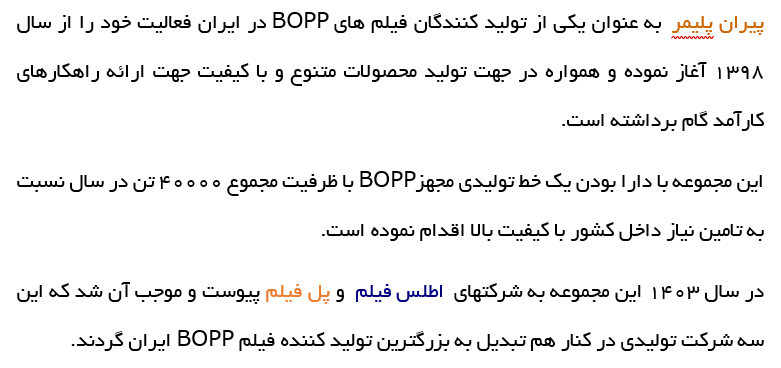 آدرس و موقعیت کارخانه:استان البرز ، جاده ماهدشت اشتهارد، شهرک صنعتی کوثر ، بلوار شهید قاسم سلیمانی،خیابان صنایع شرکت پیران پلیمر